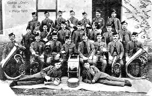 Ob začetku prve svetovne vojne je bilo vpoklicanih k vojakom več kot polovica godbenikov. Znašli so se na bojiščih Srbije, Karpatov, Galicije in po letu 1915 tudi na soški fronti. Več njenih članov se ni nikoli vrnilo domov.