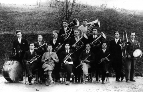 Godba se je do leta 1951 dodobra uveljavila, takrat pa jo je zapustil dotedanji dirigent Žižmond. Na njegovo mesto je stopil prvi trobentač Alojz Jarc – Lojzko. Na sliki je s prvo povojno generacijo godbenikov pomlajena vogrinska godba leta 1951.